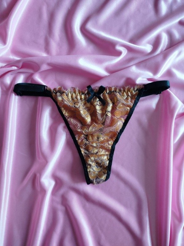 Tanga confeccionada en puntilla,breteles regulables de 10 mm, avíos hipoalergénicos.