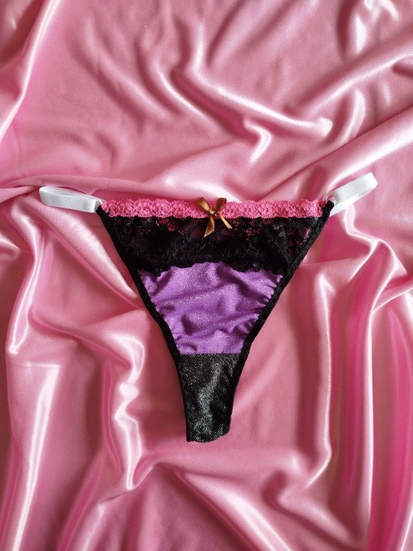 Tanga regulable confeccionada en puntilla y licra glitter. Bretel regulable blanco de 10mm con avíos hipoalergénicos.