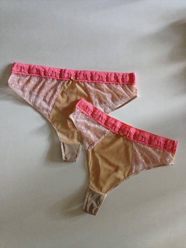 Less microtul y plumeti combinado con puntilla elastizada coral