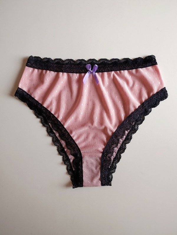 Trusa confeccionada en plumeti rosa con puntilla negra.